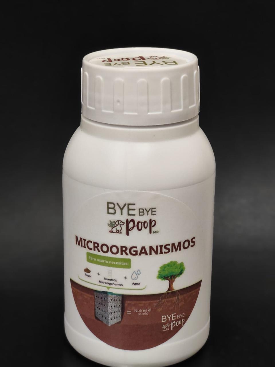 Nuestros microorganismos son la clave del sistema Bye Bye Poop. Se trata de una mezcla biológica de bacterias benéficas y enzimas naturales que descomponen la popó de perro de forma rápida, eliminan los malos olores y transforman los residuos en nutrientes para el suelo.